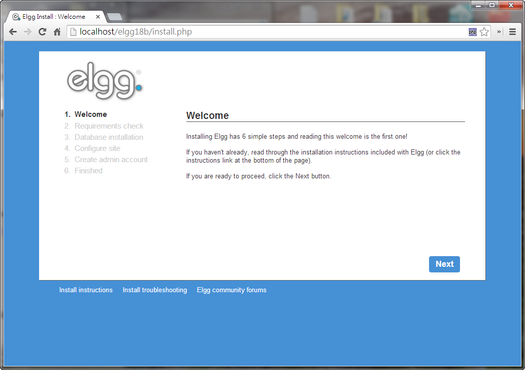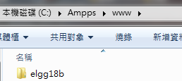 解壓檔案到 X:\Ampps\www\elgg18b\