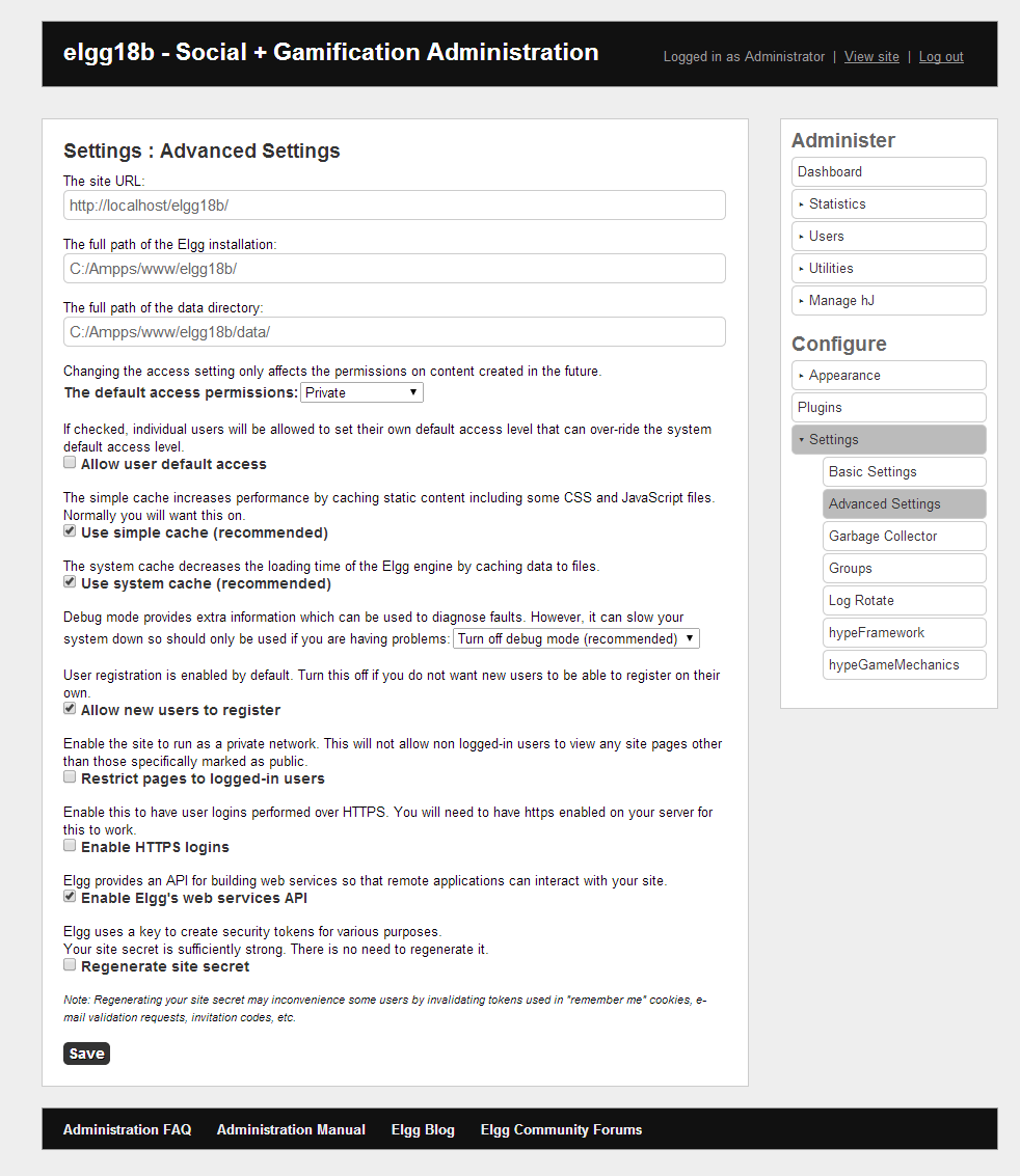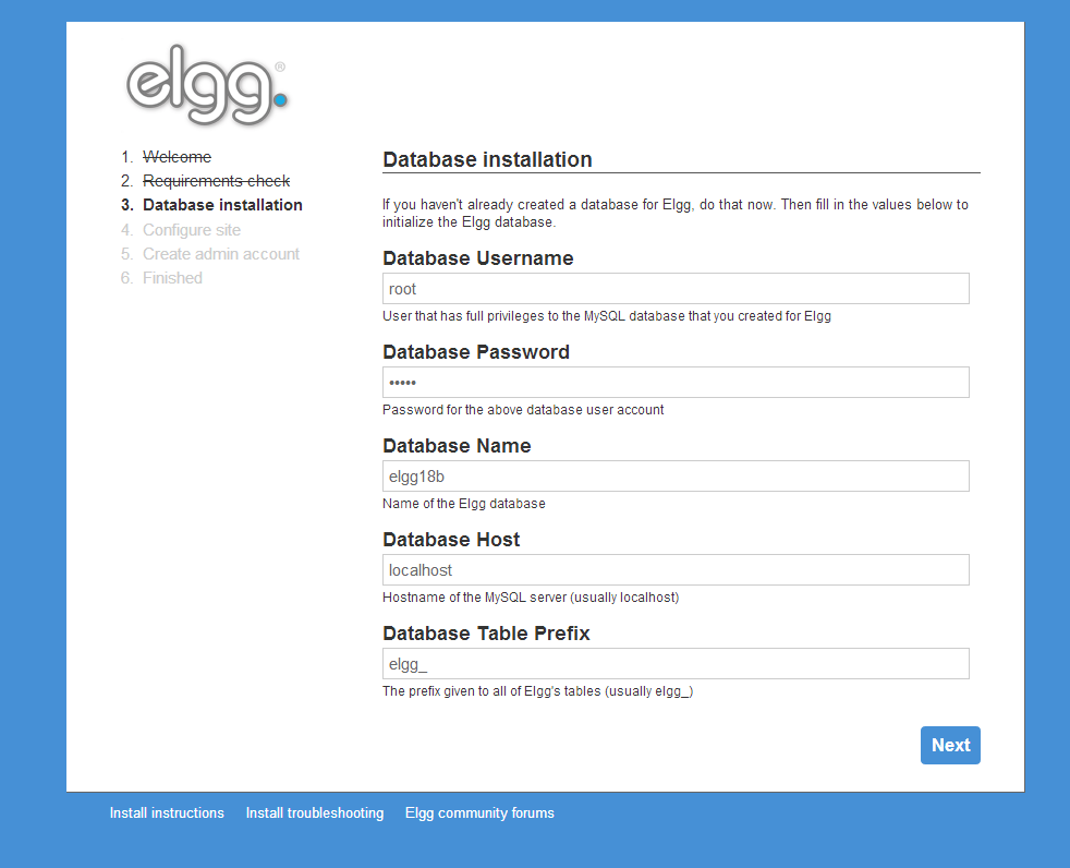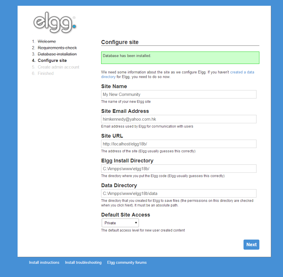 Data Directory 填上 C:\Ampps\www\elgg18b\data