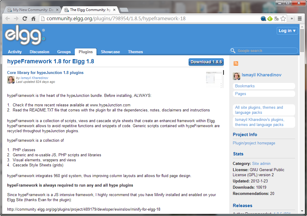 到以下網址下載, 選擇 elgg-1.8.19.zip
