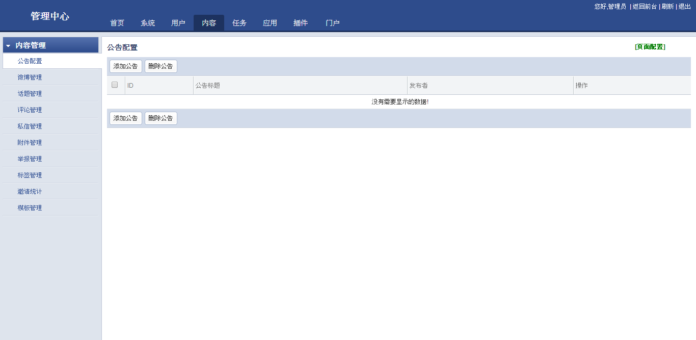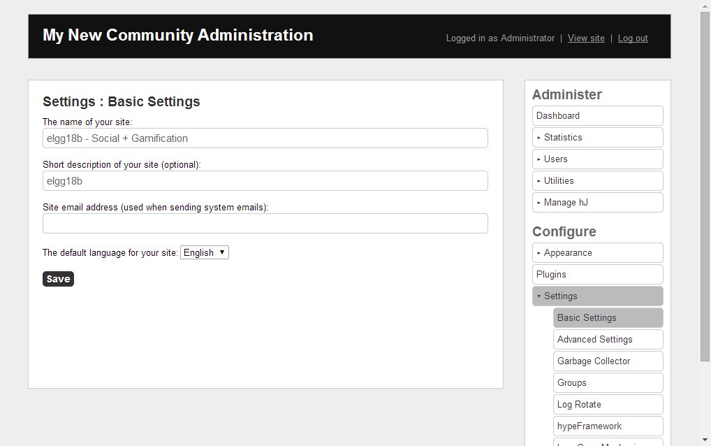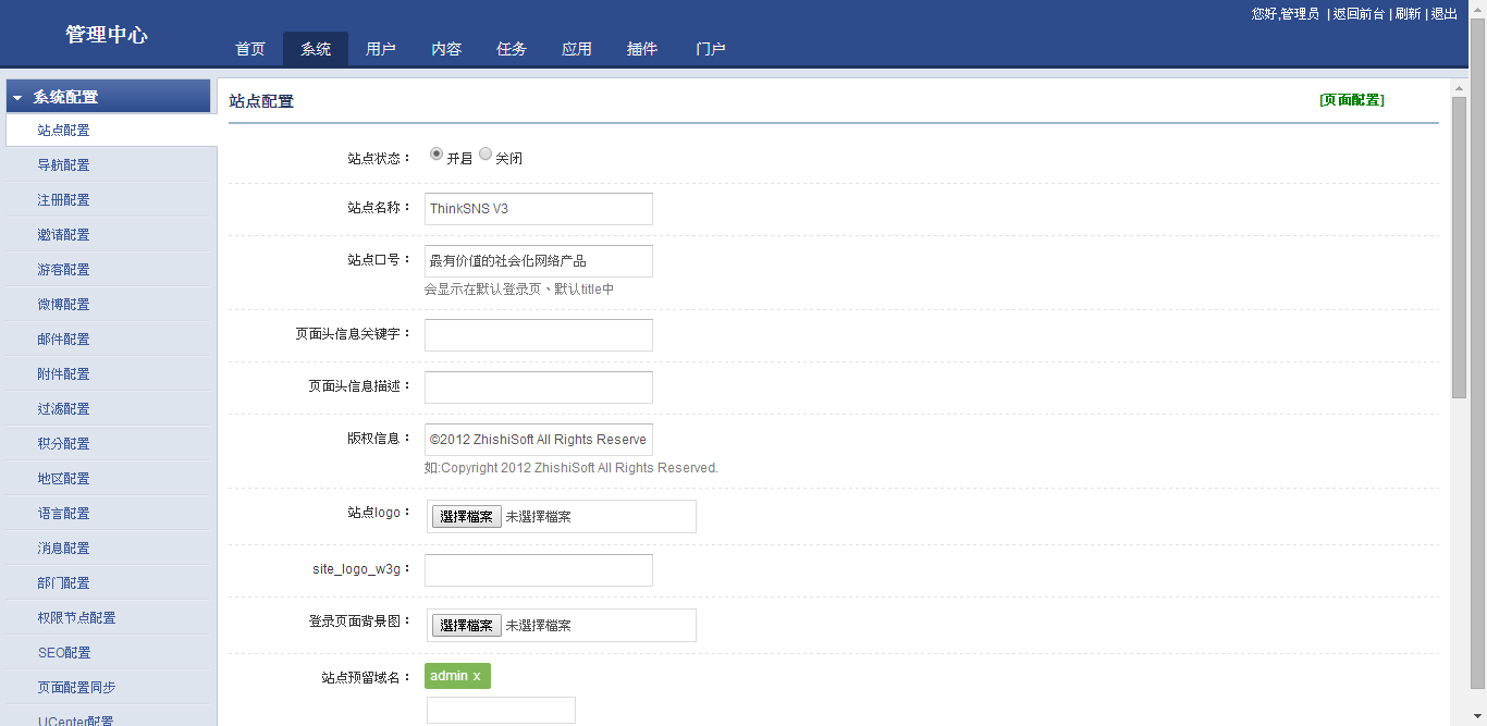 選擇 系統 -> 站點配置, 設定網站基本資料.