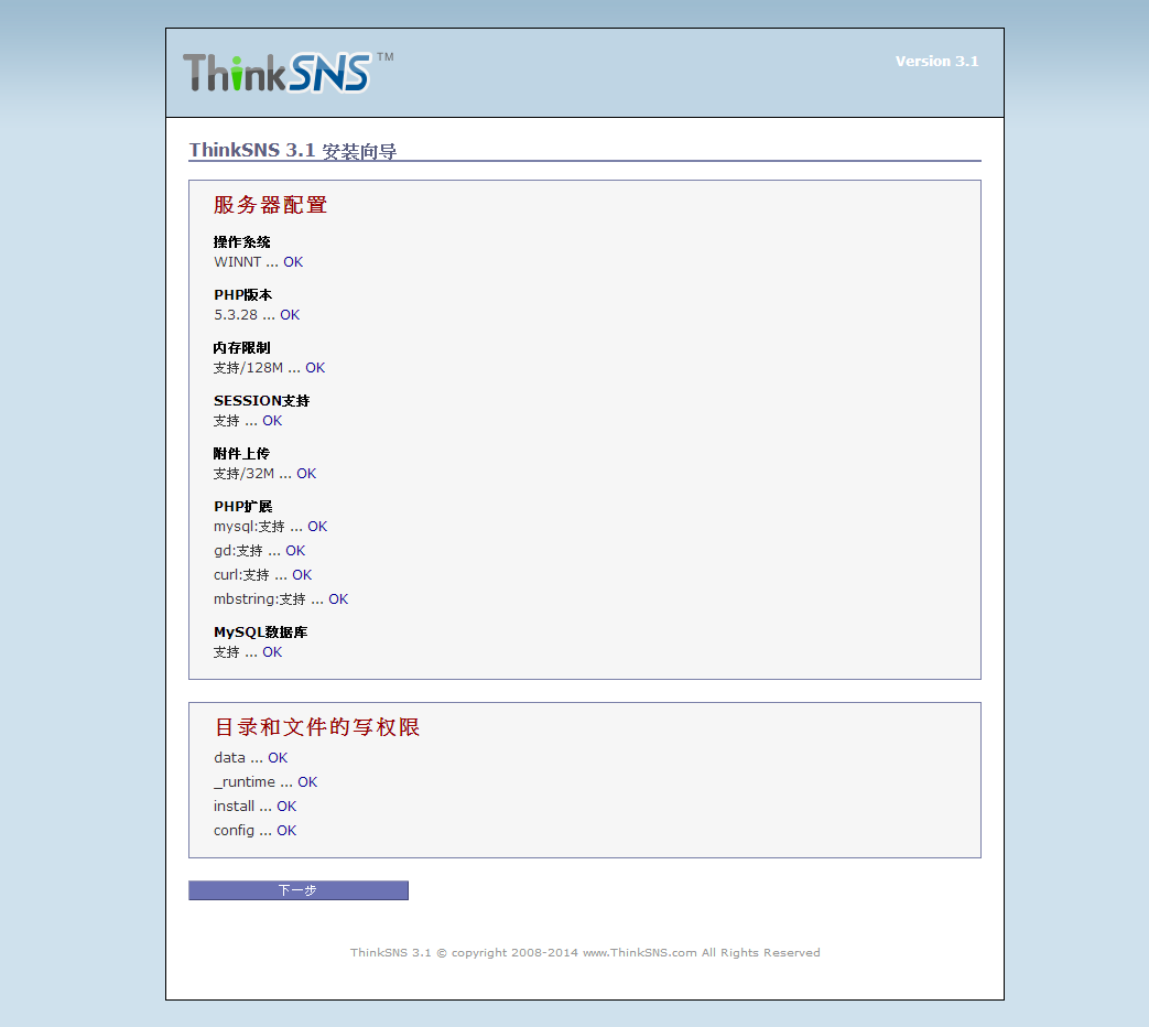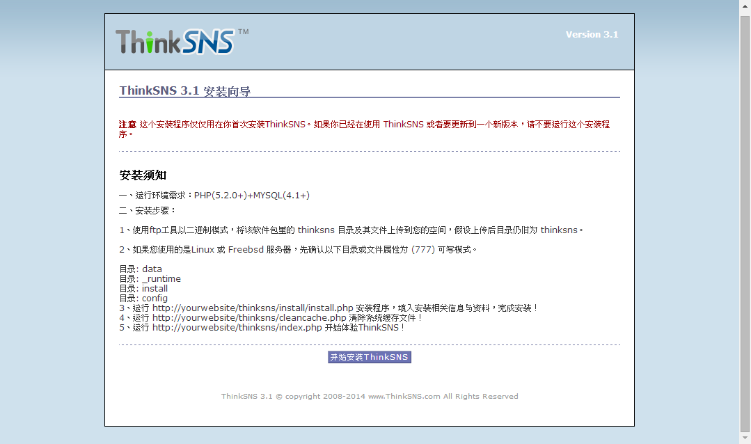 1. 安裝須知, 按 開始安裝ThinkSNS