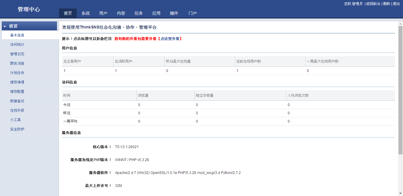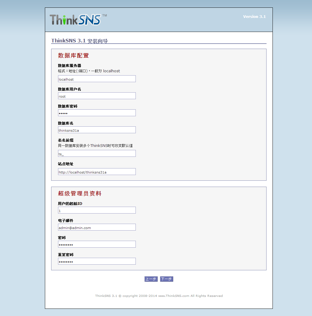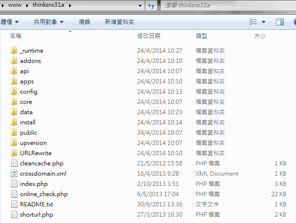 解壓檔案到 X:\Ampps\www\thinksns31a